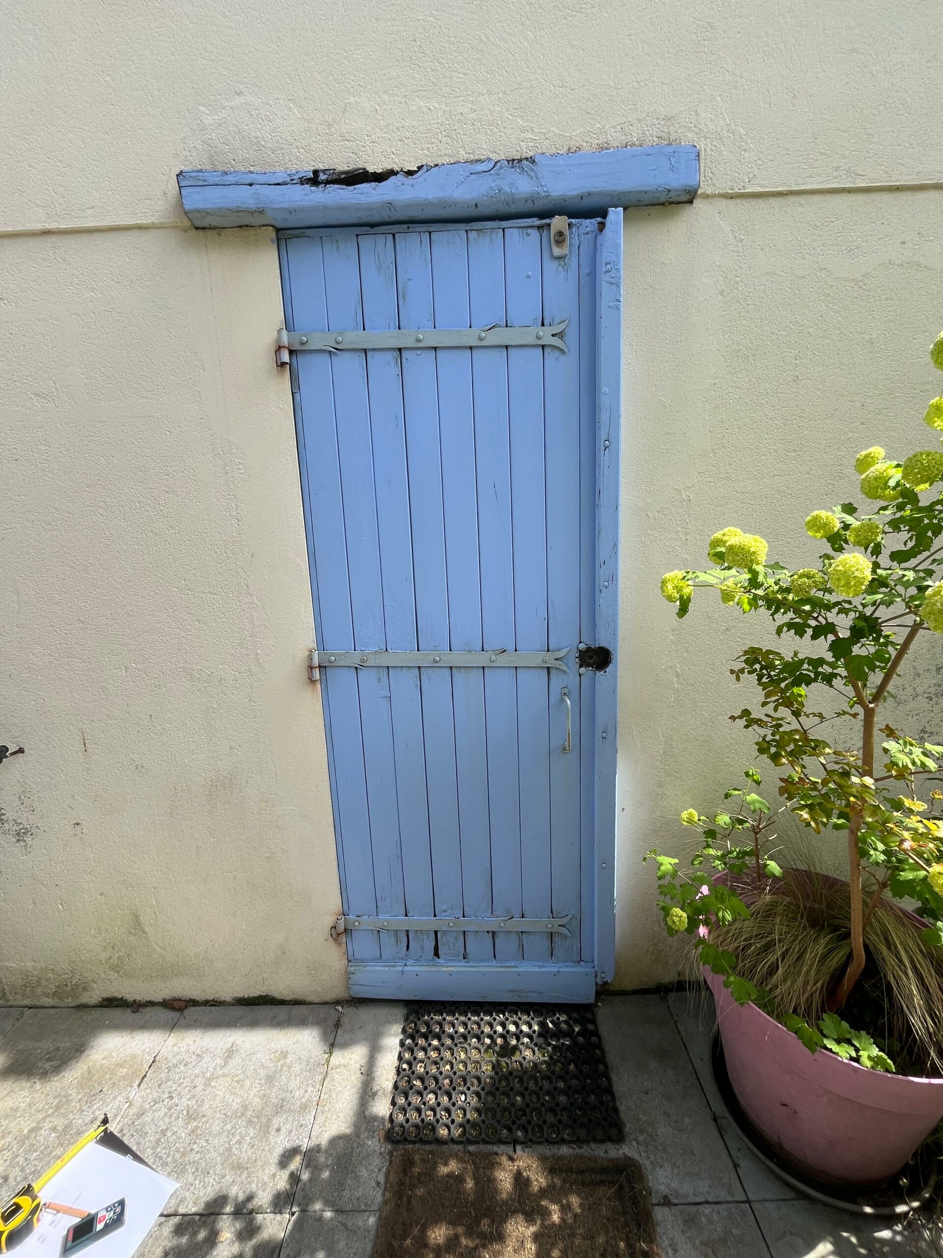 Prochaine étape la rénovation de la poutre de la porte d’entrée.